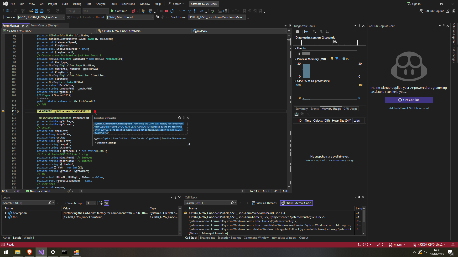System.IO.FileNotFoundException: 'Retrieving the COM class factory for component with CLSID {1B7FE896-D7DC-4934-9830-A2ACCAF1B488} failed due to the following error: 8007007e The specified module could not be found. (Exception from HRESULT: 0x8007007E).