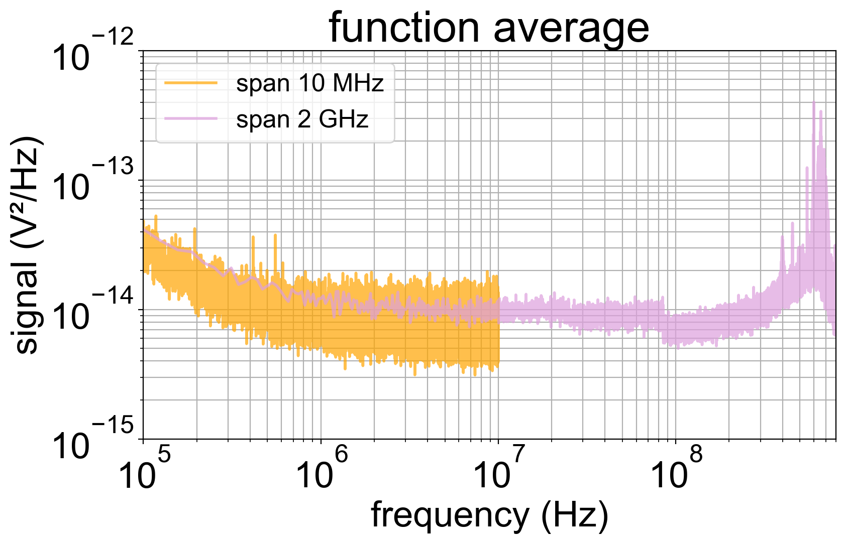 We are using the function max-hold to acquire a static spectrum with two different spans, namely 10 MHz and 2 GHz. We noticed that there is an offset between the two spectra, so we repeated the measurement with the function average in order to understand the origin of the problem. Now we see that the spectra acquired with max-hold and with average differ from each other by an offset, both the one with span 10 MHz and the one with span 2 GHz. The plots are attached.